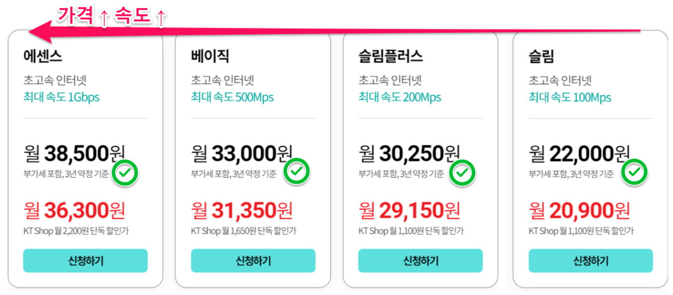 어떤 종류를 선택해야 할지, KT 인터넷 요금제 각 단계에 대해 알아보도록 하겠습니다.