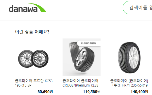 타이어 외 다양한 제품의 가격 비교 가능.