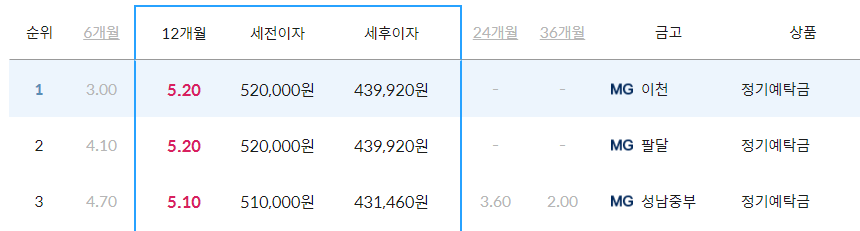 새마을금고 예금금리 가장 높은곳 Top 3 (12개월 기준)
