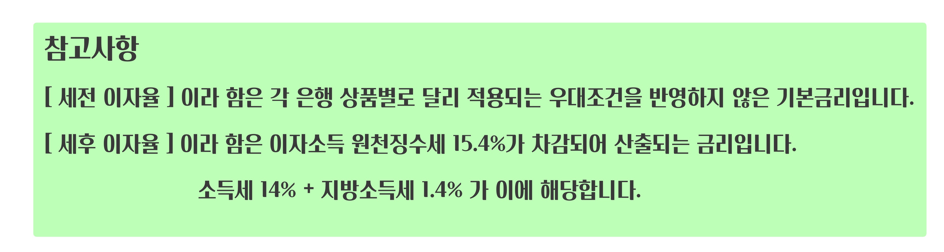 예금자보호상품은 개인 1인당 원리금 합계로 5천만원한도 내에서 예금보험공사가 책임지고 보호해주는 제도이므로 고금리만 쫓으시지 마시고 소중한 내 돈의 보호권리 또한 반드시 확인해 보시길 정기예금을 가입하시길 강력추천 드립니다.