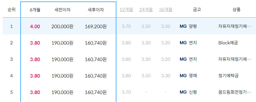 새마을금고 예금금리 가장 높은곳 (6개월 Top5)