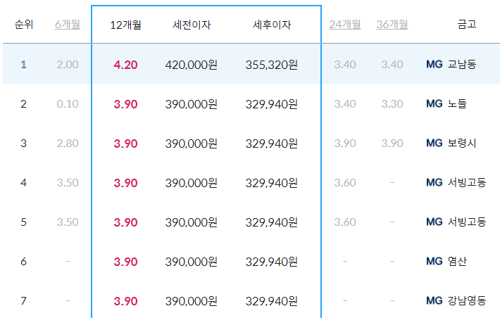 새마을금고 예금금리 가장 높은곳 (Top7) 12개월기준