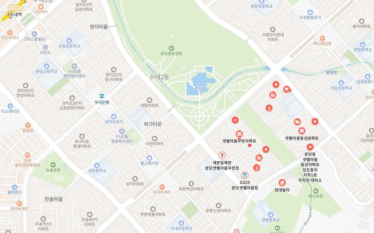- 위치적 장점: 분당 중심에 위치해 교통, 생활 편의시설 접근성이 뛰어나며, 중앙공원과 인접해 자연친화적 환경을 제공합니다.